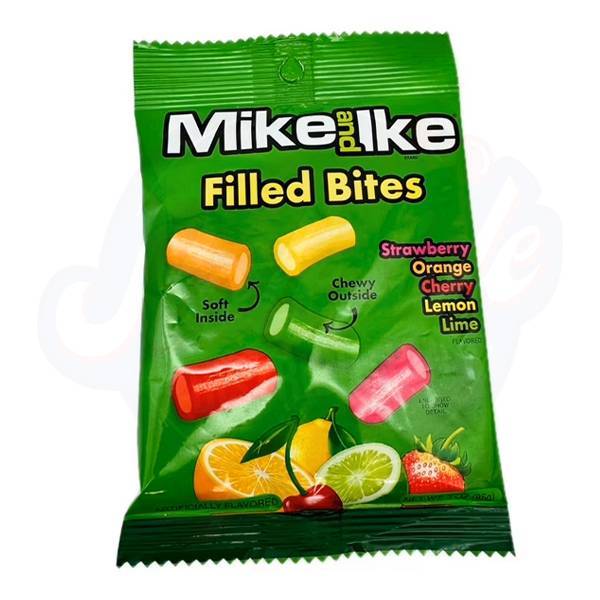 - Red liquorice bites filled with fruity Mike & Ike candy filling