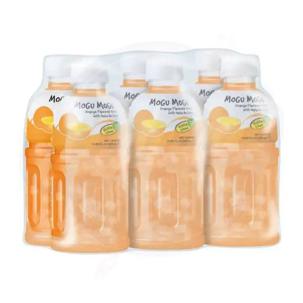 Mogu Mogu Orange is a tropical juice drink infused with real nata de coco (coconut jelly) pieces for a refreshingly fun texture. This 6-pack of 10.8fl oz (320ml) bottles delivers bright citrus flavour and a satisfying chew, perfect for anyone who enjoys a drink that’s also a snack.