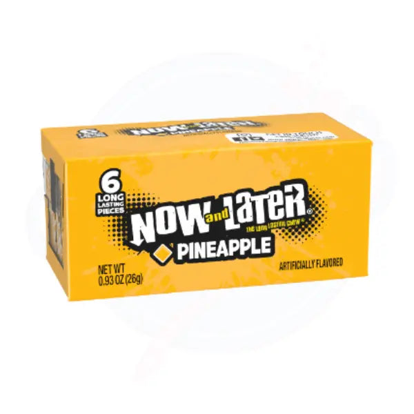Now and Later Pineapple 26g offers a long-lasting burst of tropical flavour with a satisfyingly chewy texture. Each piece starts firm and fruity, then softens for a smooth chew that keeps you coming back.